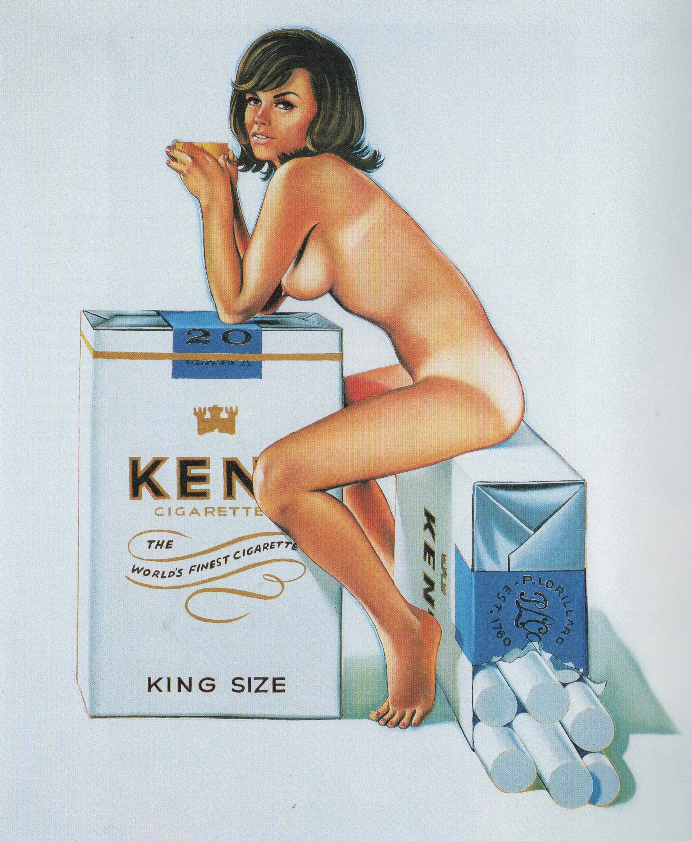 Mel Ramos, 1935–2018, was an American artist and university art professor who gained his Pop inspirations from consumer advertising and girlie magazines. James notes, “By presenting women in degrading circumstances at a time when the women’s rights movement was gaining strength in the United States, Ramos challenged the very legitimacy of the canons of good taste.” Micronite was the patented, and much-hyped, ingredient in the Kent cigarette filter.