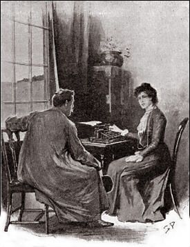 Laura Lyons with her Remington. Image by Sidney Paget in The Hound of the Baskervilles, serialized in the Strand Magazine, January 1902.