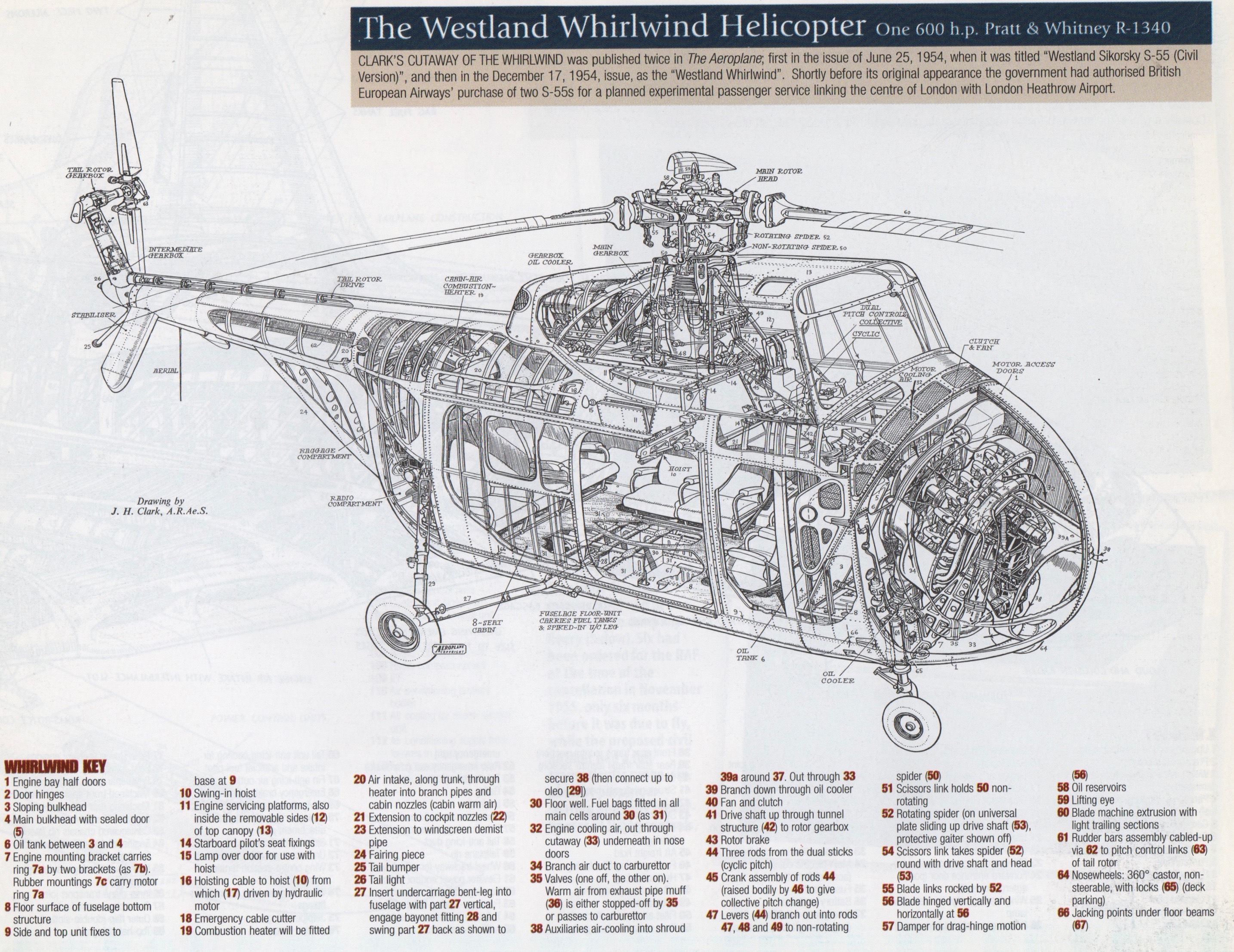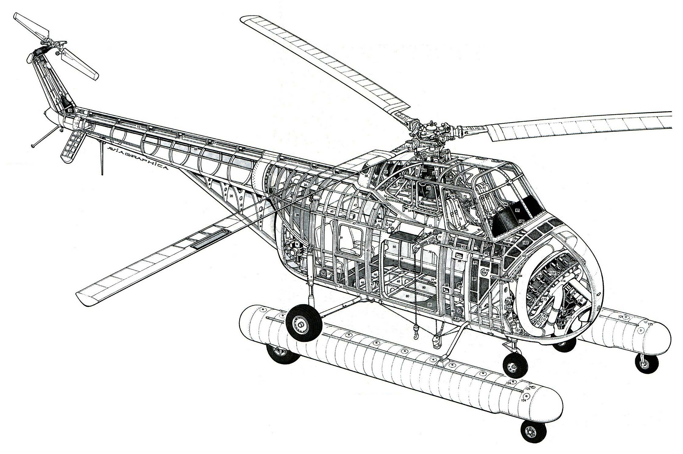 The Art of the Cutaway. I have profound respect for artists of cutaways. Even before I researched the Chicksaw/Whirlwind, cutaway drawings of the design fascinated me because of this helicopter’s engine location, its angled driveshaft housing splitting the cockpit, and its main gearbox directly below the rotor assembly.