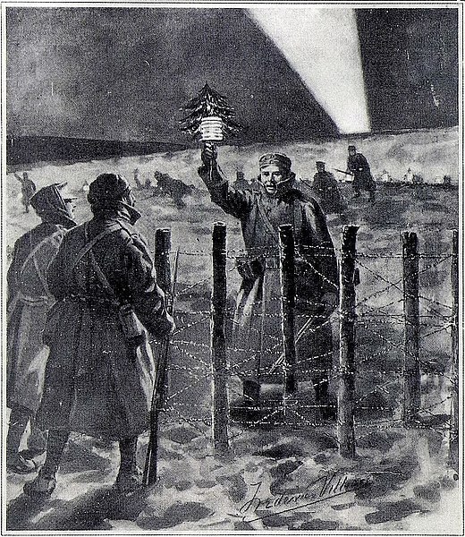 The 1914 Christmas Truce, as depicted by Frederic Villiers in the Illustrated London News, January 9, 1915.