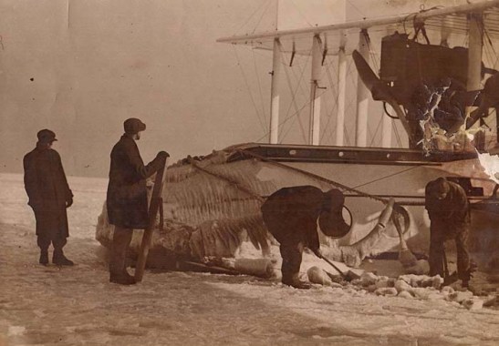 An Icy Aeromarine Adventure. Another of the Aeromarine 75s, the Ponce de Léon, had an adventure on the year of its christening, 1921. Attempting to set down in a frigid Raritan Bay separating Staten Island from New Jersey, the craft got stuck in the ice. The Ponce de Léon had to be dynamited out, though it survived to start service in Key West within a month.
