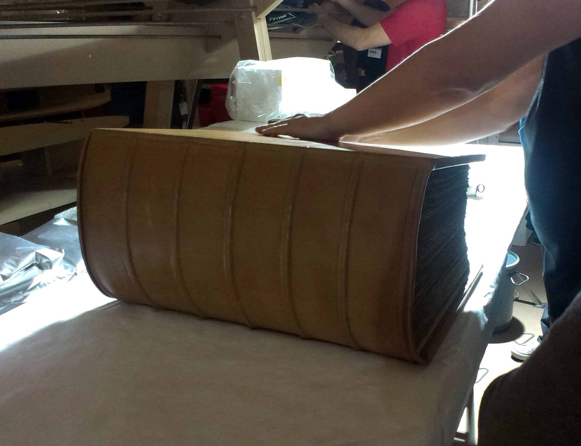 The Codex Amiatinus, still in a single volume, rebound in calfskin in 2001. Image by Remi Mathis in wikipedia.org.