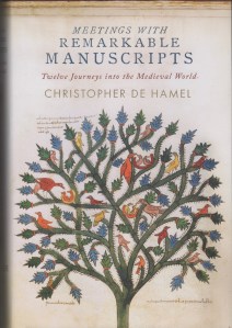 Meetings with Remarkable Manuscripts: Twelve Journeys into the Medieval World, by Christopher De Hamel, Penguin Press, 2017.