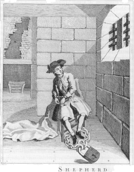 Arrested Twice, Escaped Twice. Jack’s first arrest for burglary came on February 5, 1724, when he was snitched on by his older brother ex-con Tom, a co-conspirator along with Edgworth Bess. Jack’s stay in St. Gile’s lasted less than three hours: He broke through a wooden ceiling and lowered himself to the ground with knotted bedwear. Still wearing irons, Jack joined others and added to the confusion by pointing up and shouting that the escapee could be seen in the roof’s shadows. Then he made himself scarce.