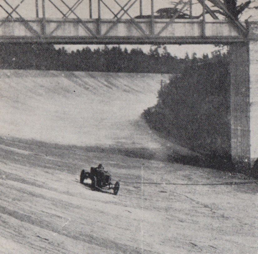 The Argyll passes under the Member’s Bridge at Brooklands, May 19, 1913.