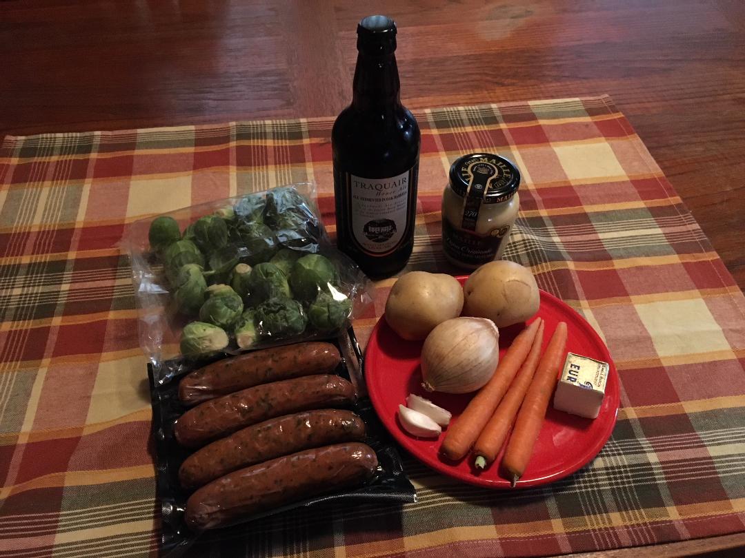 OUR FRIDGE JUST happened to contain a bottle of Scottish ale, some sausage, and veggies including Brussels sprouts. A perfect time for making stew.