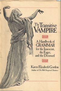 The Deluxe Transitive Vampire: The Ultimate Handbook of Grammar for the Innocent, the Eager, and the Doomed, by Karen Elizabeth Gordon, Pantheon, revised edition, 1993.