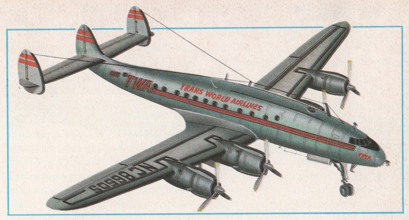 Here’s a collection of Connie tidbits, gleaned from Airliners from 1919 to the Present Day, by Kenneth Munson, illustrated by John W. Wood et al, Peerage Books, 1972; and World Aircraft Commercial 1935-1960, by Enzo Angelucci, illustrated by Paolo Matricardi, Rand McNally, 1979. I did my usual Internet sleuthing as well.