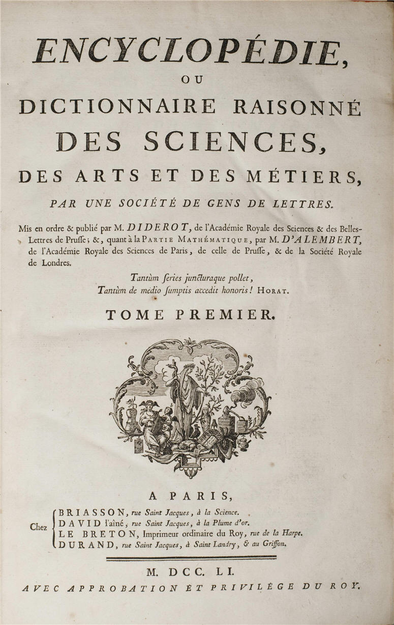 Encyclopédie, ou Dictionaire Raisonné des Sciences, des Arts et des Métiers, 1751–1780. Image from libraries.mit.com.