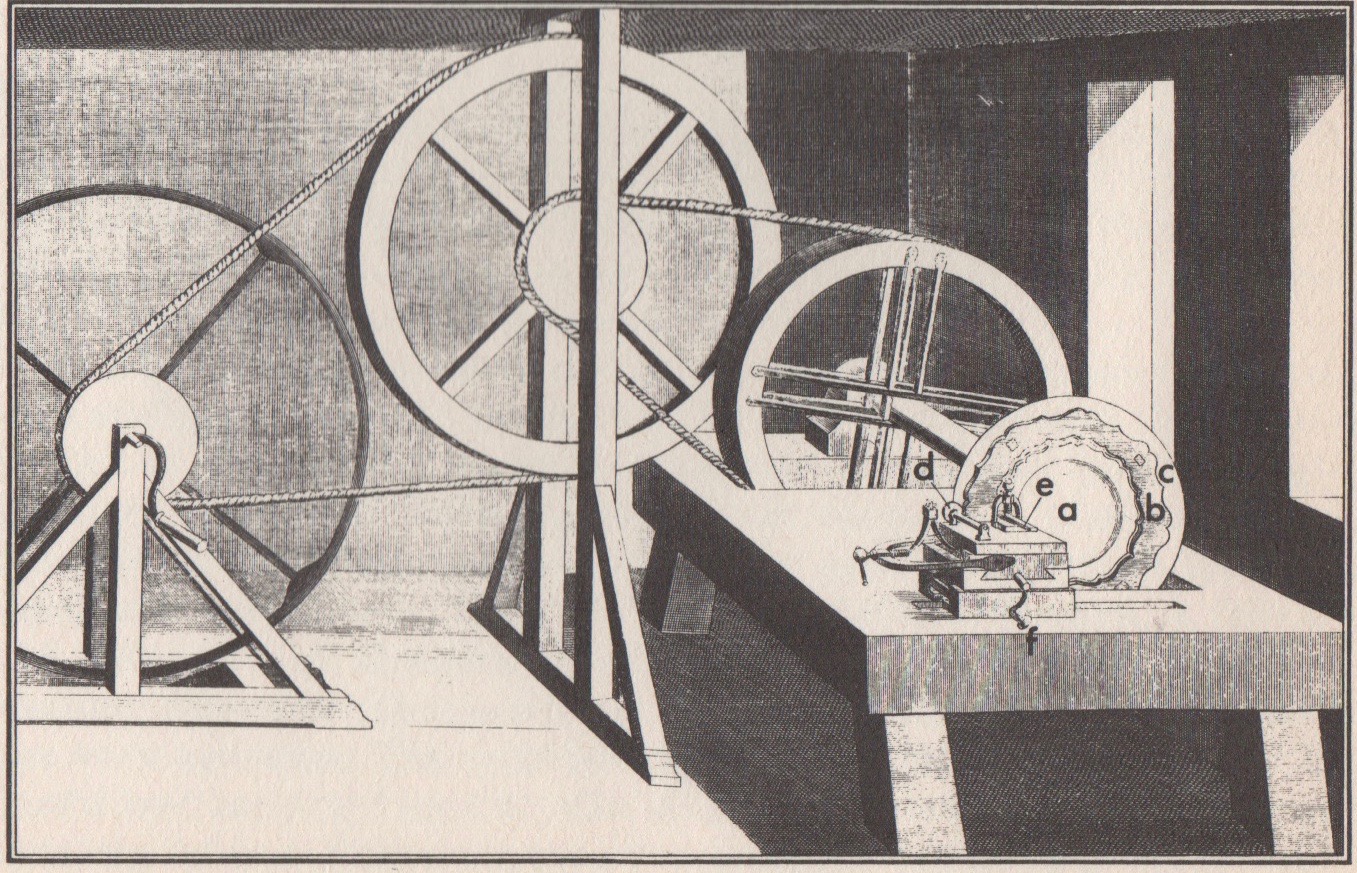 A goldsmith’s lathe described in the Encyclopédie could inscribe artful patterns on plates of precious metal.