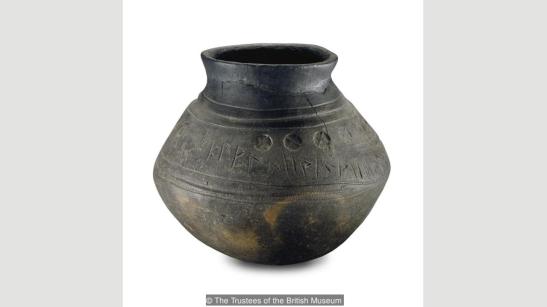 Cremation urn from Loveden Hill, 5th-century. Note its runic inscriptions. This and the following image from bbc.com.