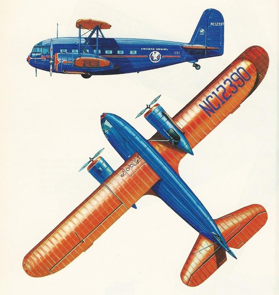 Curtiss-Wright Condor in 1934 American Airways livery. Image from Airliners Between the Wars, 1919-39 (Colour), by Kenneth Munson, Blandford Press, 1972.