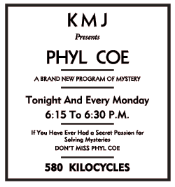 OUR STARS of the Phyl Coe Radio Mysteries were introduced yesterday in Part 1 here at SimanaitisSays. Today in Part 2, let’s see how Philco (“Phyl Coe,” get it?) hyped the programs.