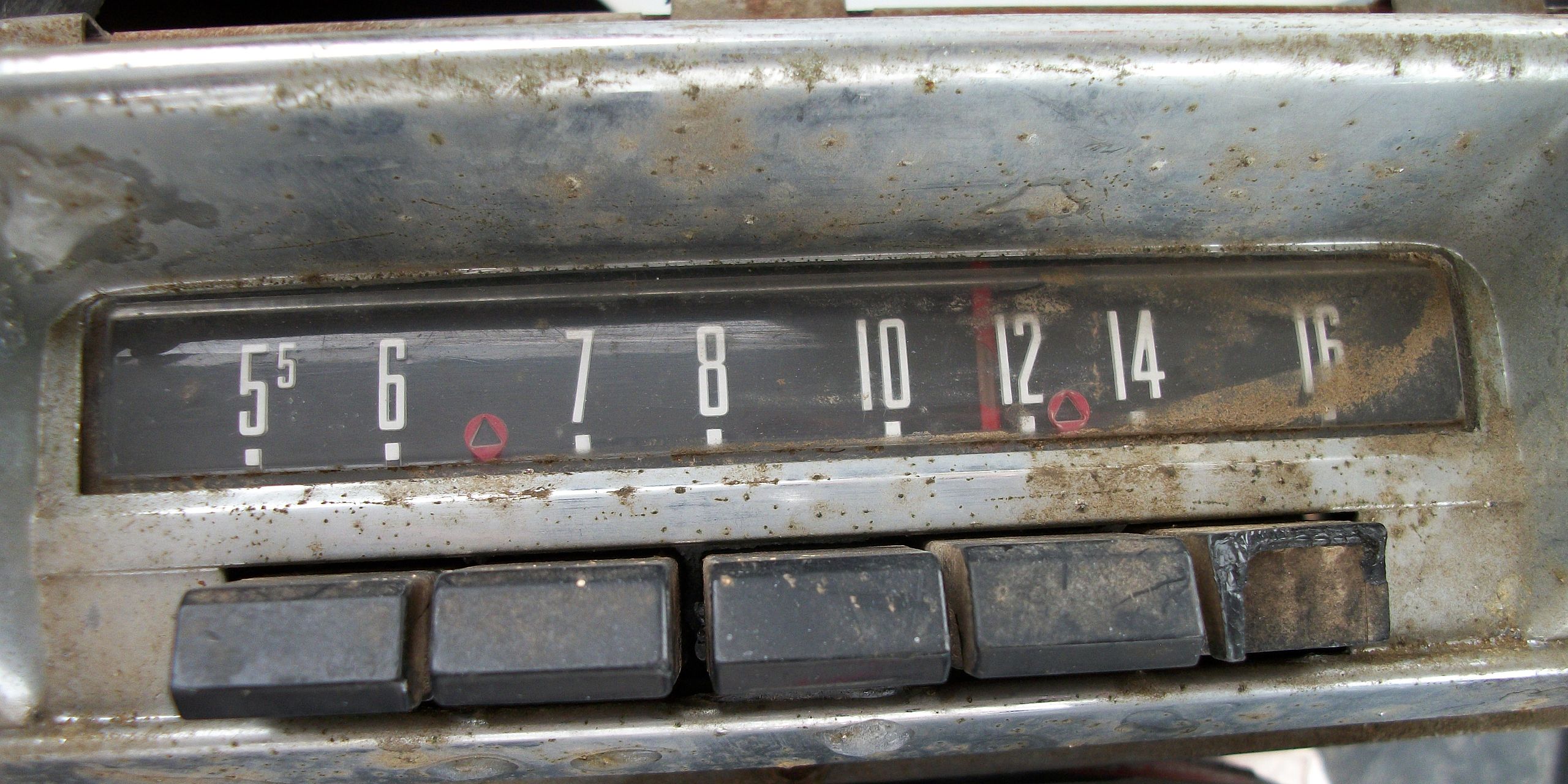 Above, an AM radio dial and its CONELRAD locator. Below, car radio buttons discovered by Feddecheenee.