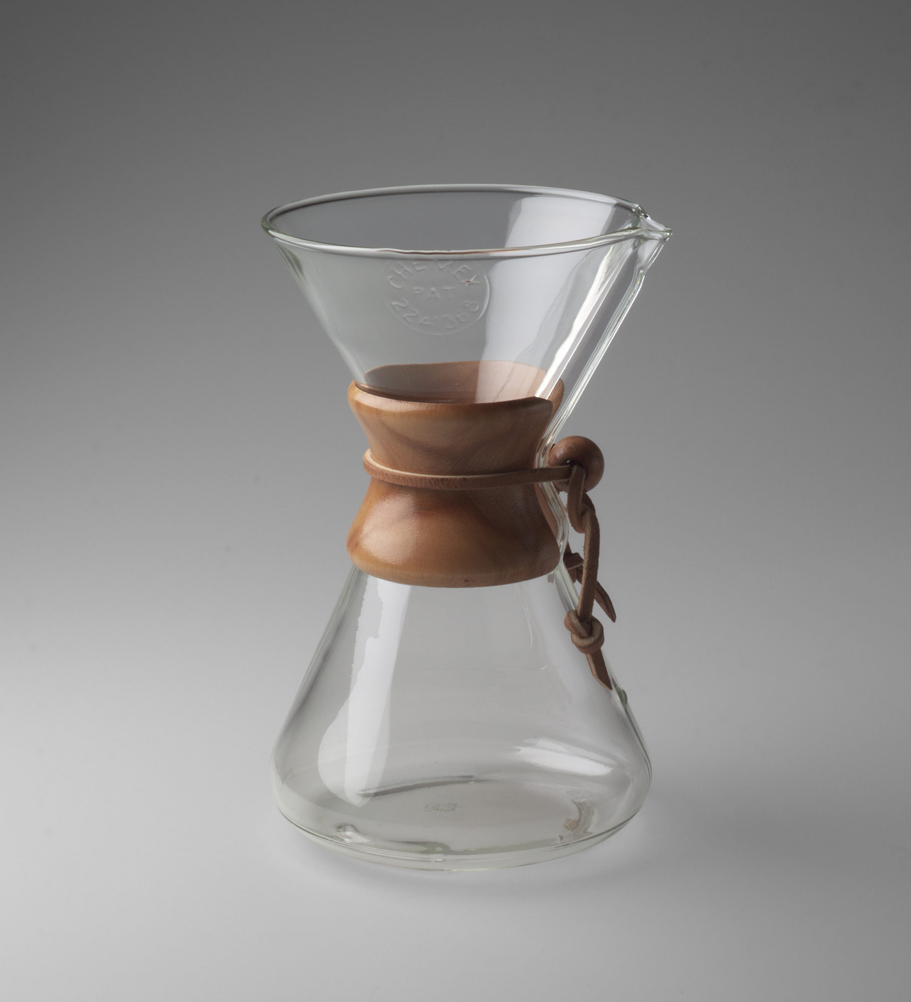 Chemex Coffee Maker, Borosilicate glass, wood, leather, 1941; Peter Schlumbohm, American, German-born, 1896–1962.