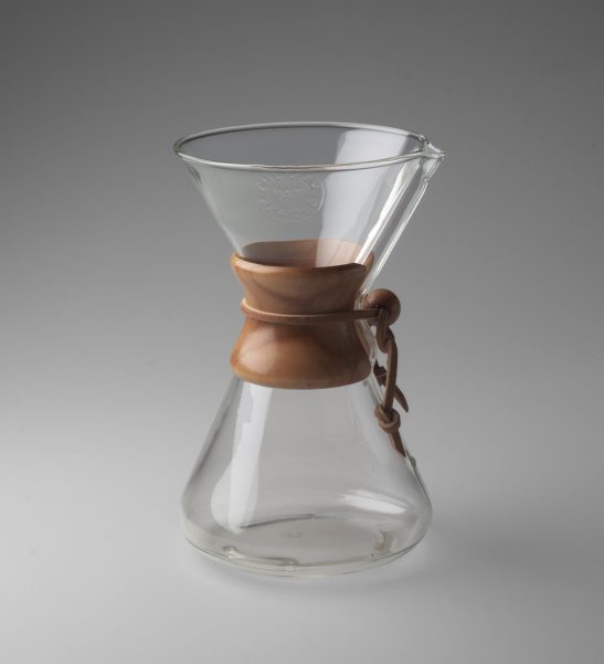 Chemex… Bond’s Chemex. No less than James Bond appreciated this 1941 coffee maker. In From Russia with Love, 1957, author Ian Fleming describes 007’s London breakfast routine: “It consisted of very strong coffee, from De Bry in New Oxford Street, brewed in an American Chemex, of which he drank two large cups, black and without sugar. The single egg, in a dark blue egg cup with a gold ring round the top, was boiled for three and a third minutes.”