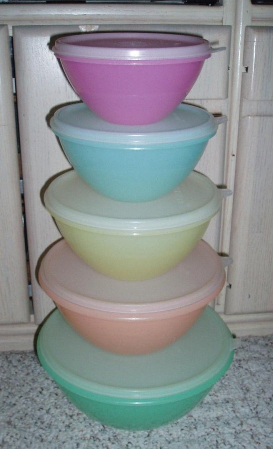 Tupperware nesting bowls, plastic, 1946; Earl S. Tupper, American, 1907–1983. Image from worthpoint.com.