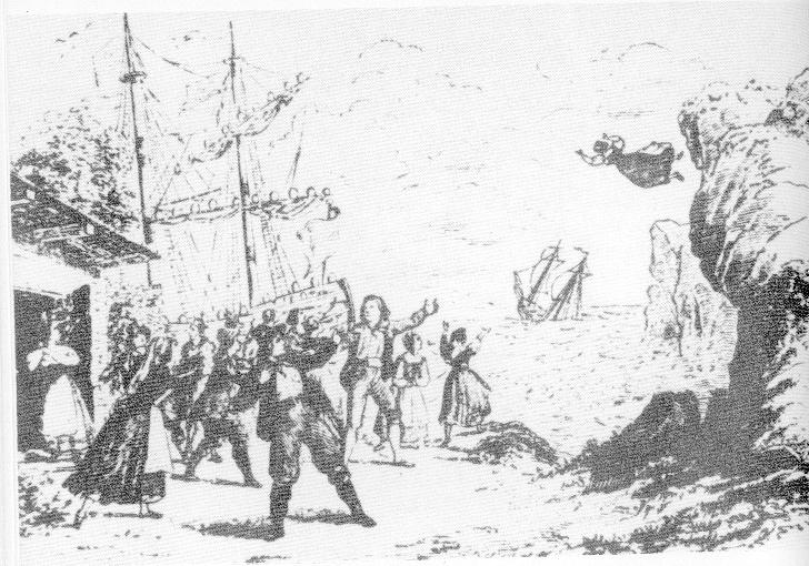 The last scene of Wagner’s Der Fliegende Holländer. Image from Leipziger Ilustrierte Zeitung, January 3, 1843.