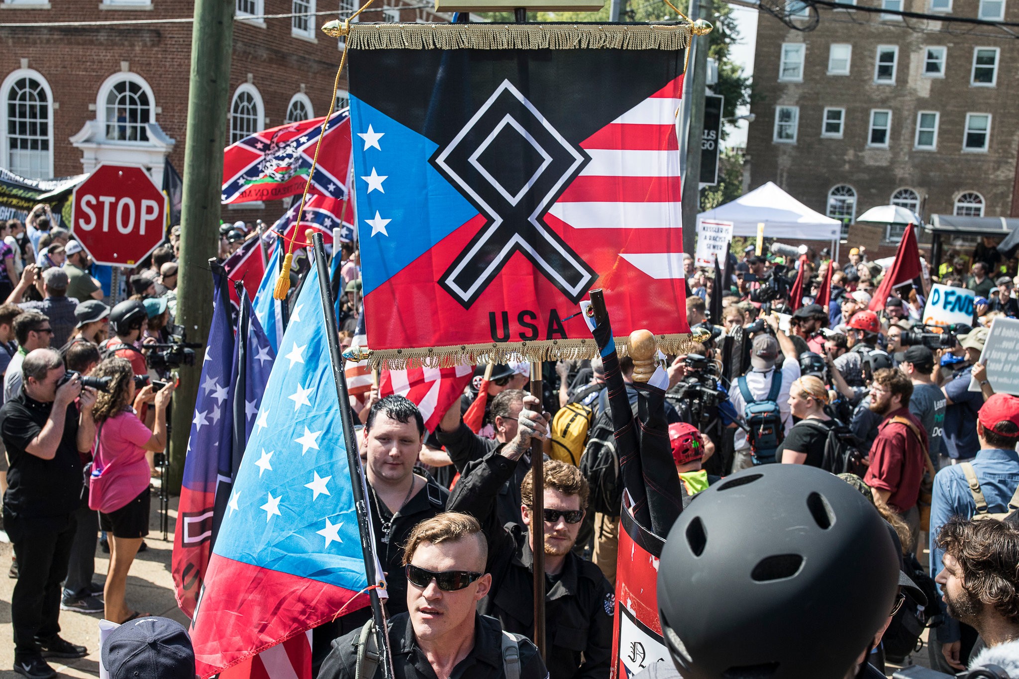 Charlottesville marchers also hijacked other imagery, including shields from the Knights Templar, a religious military order founded in 1119, recognized by Pope Innocent II in 1139, and suppressed by Pope Clement V in 1312.