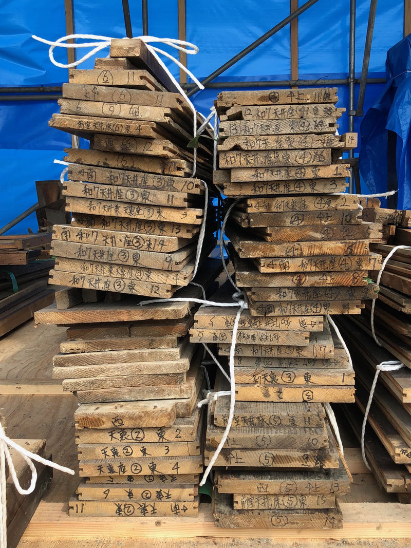 Deconstructing a Shōya’s Residence. The building is largely of wood, and every beam, post, and panel had to be documented, labeled, and disassembled. The assortment is now in a workshop in Matsuyama, on Japan’s Shikoku Island.