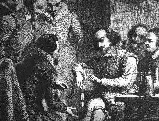 A 19th-century engraving of Jonson, left, and Shakespeare debating at the Mermaid Tavern, a Cheapside London hangout where the Fraternity of Sireniacal Gentlemen met on the first Friday of every month.