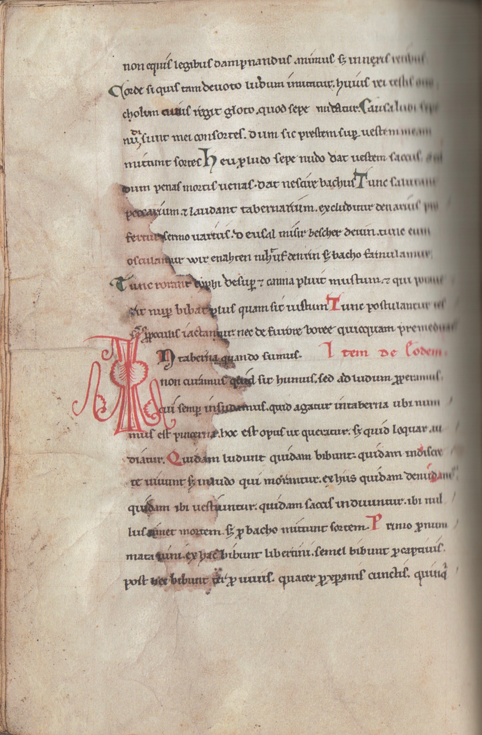 The most damp-stained page of the Carmina Burana contains a drinking song.