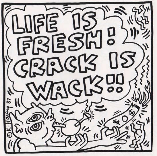I’ve enjoyed Haring’s provocative whimsy ever since the Phoenix Art Museum organized “Haring, Warhol, and Disney” in 1991. Following here are tidbits on the LRB article, the Phoenix show, and my usual Internet sleuthing.