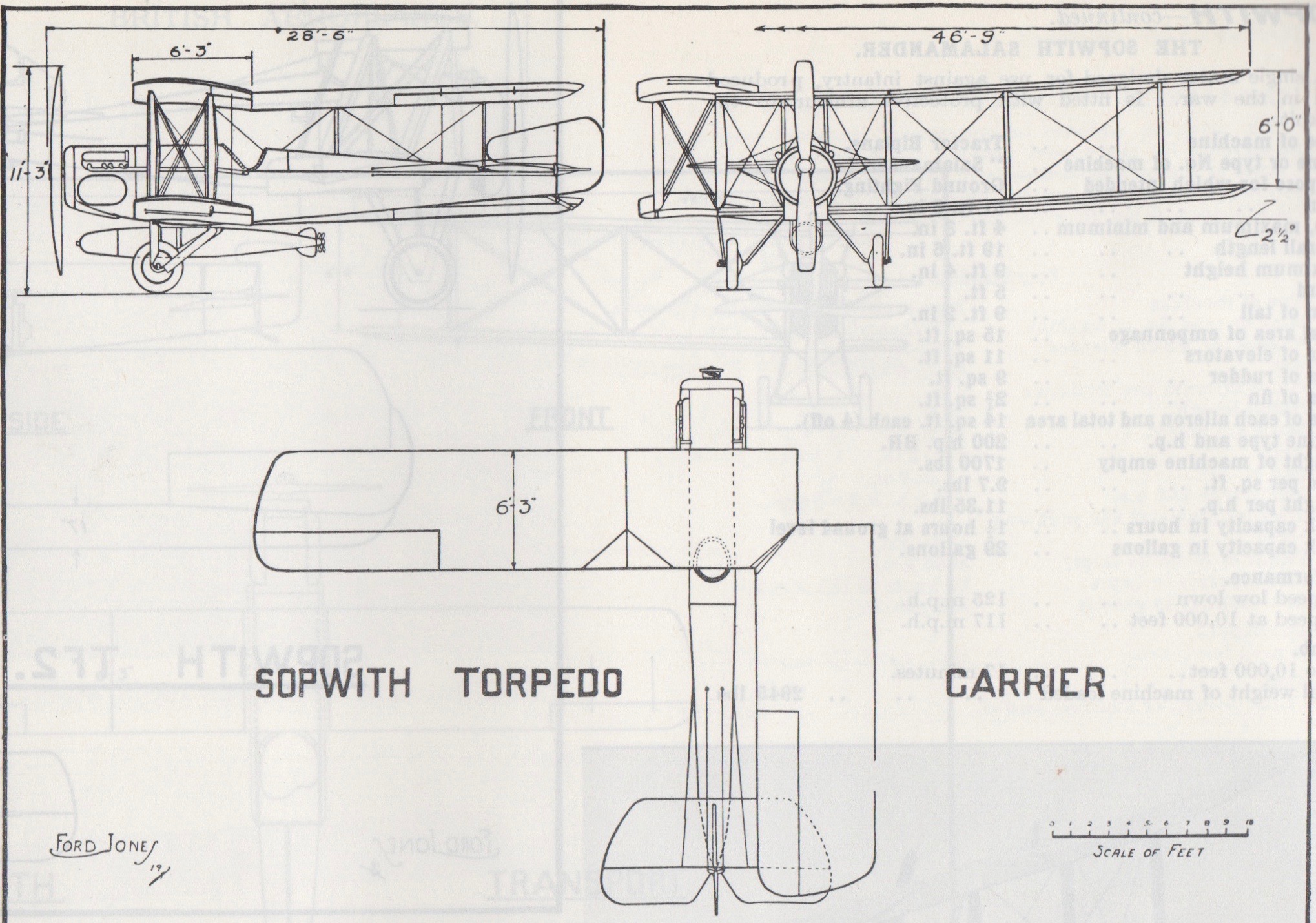 According to Milestones of the Air, with Arab engine and a torpedo mounted, the T.1 had a maximum speed of 103.5 mph at 2000 ft. Its climb to 6500 ft. took a lengthy 15 minutes 40 seconds. The aircraft took 26 minutes to reach 10,000 ft., with a service ceiling of 12,100-ft.