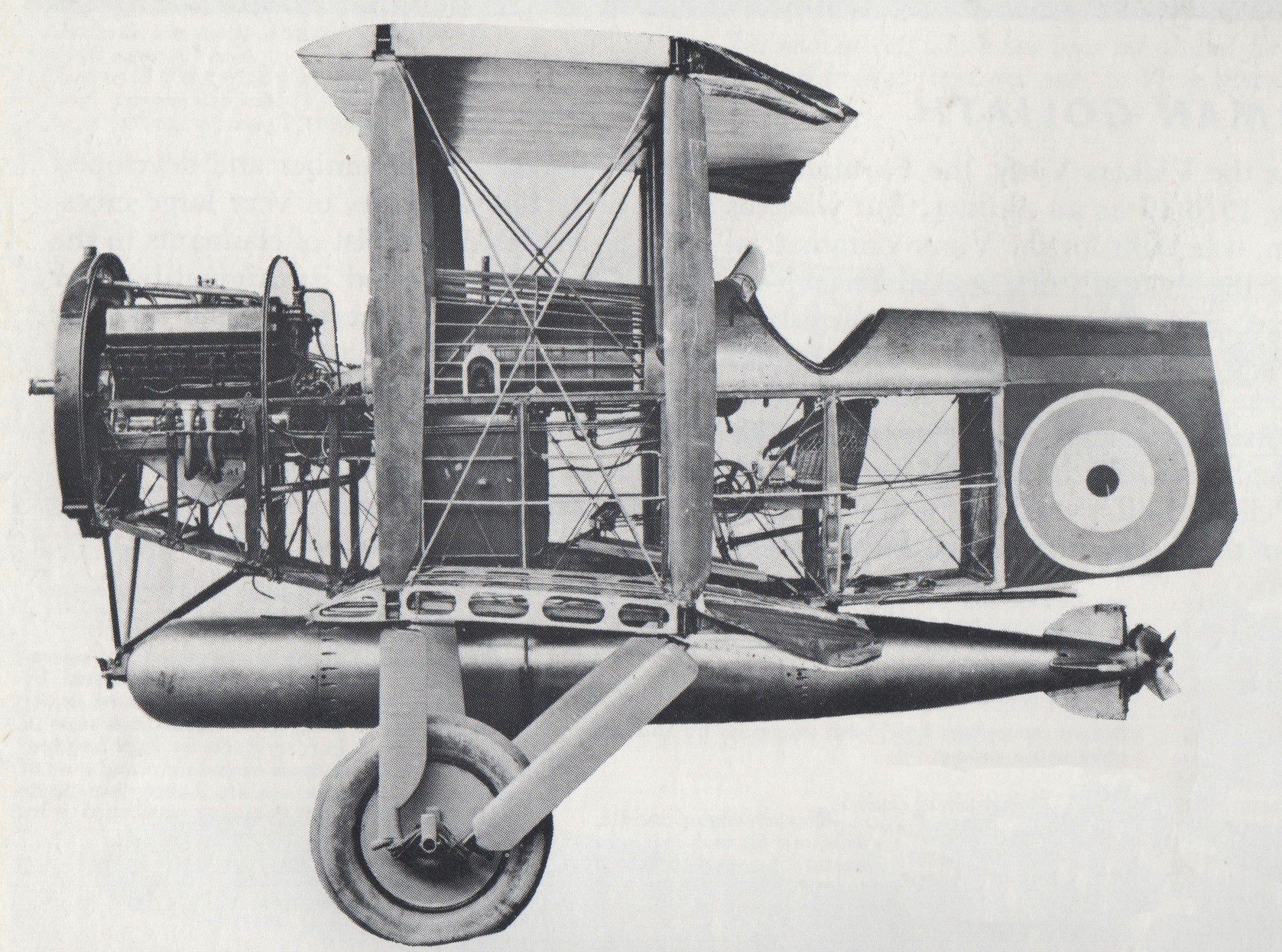 Unlike typical landing gear on early aeroplanes, the T.1’s undercarriage had no cross axle interfering with its torpedo ordnance. In their Milestones of the Air, John W.R. Taylor and H.F. King devote a full 16 lines detailing this innovative landing gear.