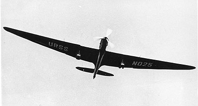 These wings held considerable fuel, which comprised more than 50 percent of the aircraft’s takeoff weight. Power was supplied by a Mikulin AM-34 46.9-liter V-12 producing 800 hp. The aircraft cruised at 103 mph with a range of more than 6700 miles.
