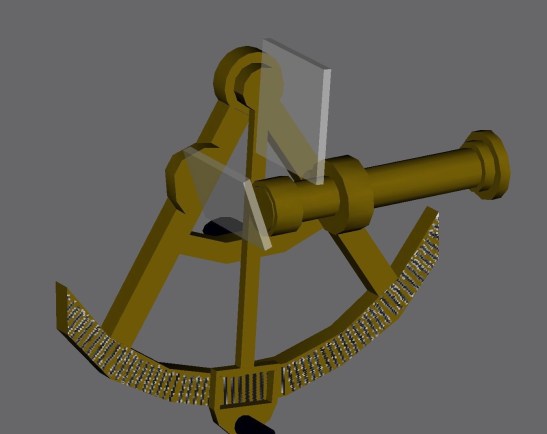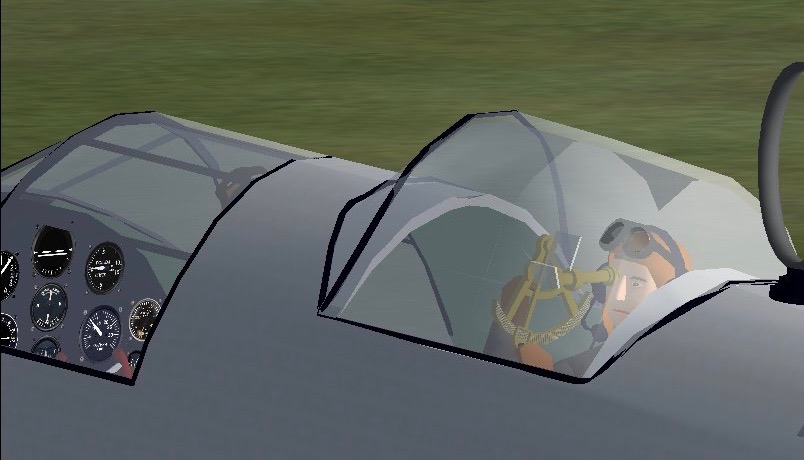The navigator has a sextant which I ginned up with GMax, based on a small brass one I acquired in a New Zealand antique shop.