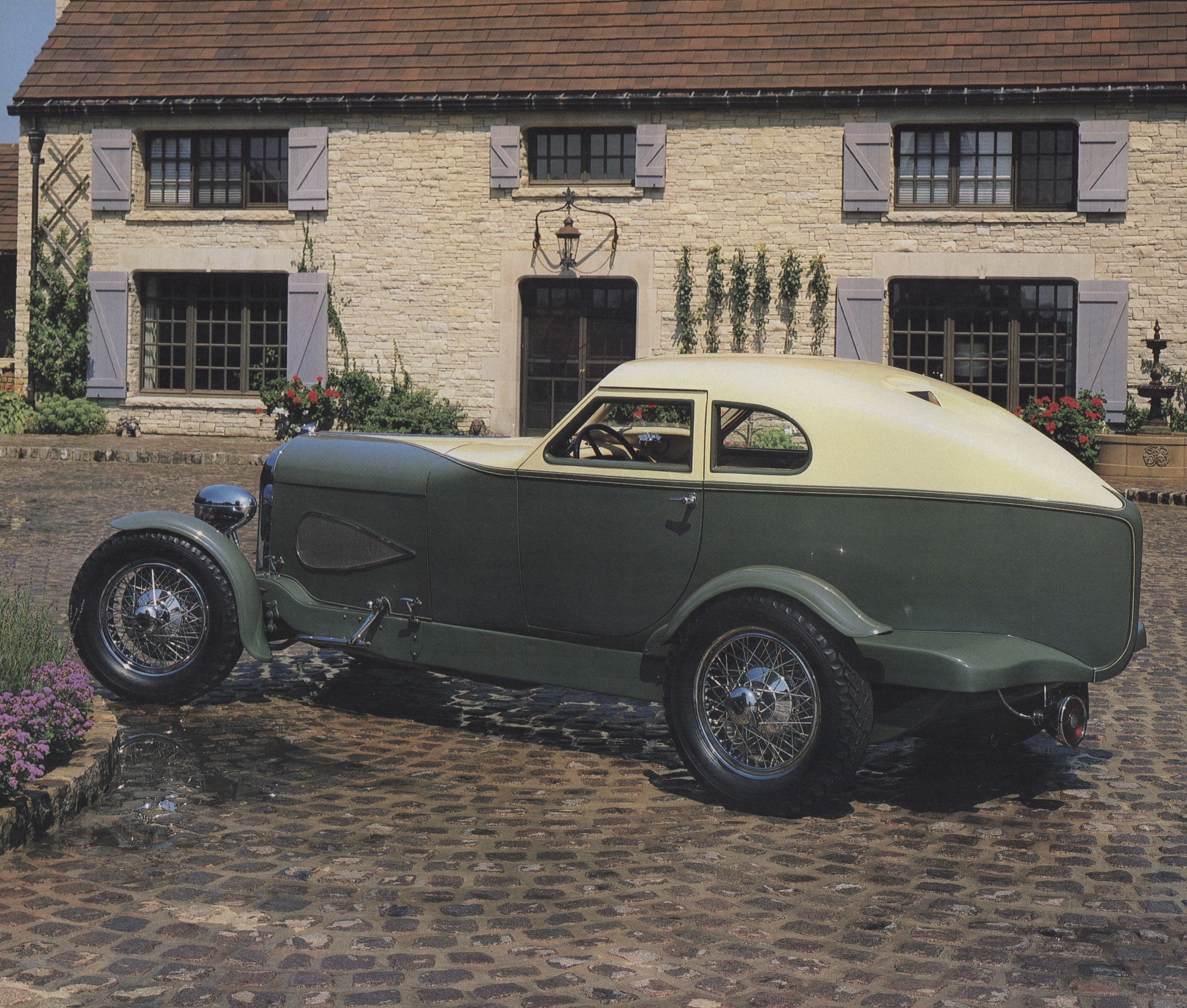 A Road Plane with Wings. Attention to aerodynamic details was evident. Door hinges of the Cabin Speedster were recessed, unlike standard practice of the era. Running boards were eschewed. Merely as styling fillips, the front shocks were tapered at their rear and the hood vents were shaped like airfoils.