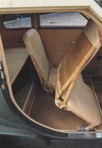 Kesling cited Cord’s goal of making “a road plane with wheels instead of wings!” The interior of the Cabin Speedster continued this theme, even to incorporating an altimeter and compass among its instruments. Wrote Kesling, “The seats were modified (lowered) versions of the wicker basket-type used on E.L. Cord’s personal plane.”
