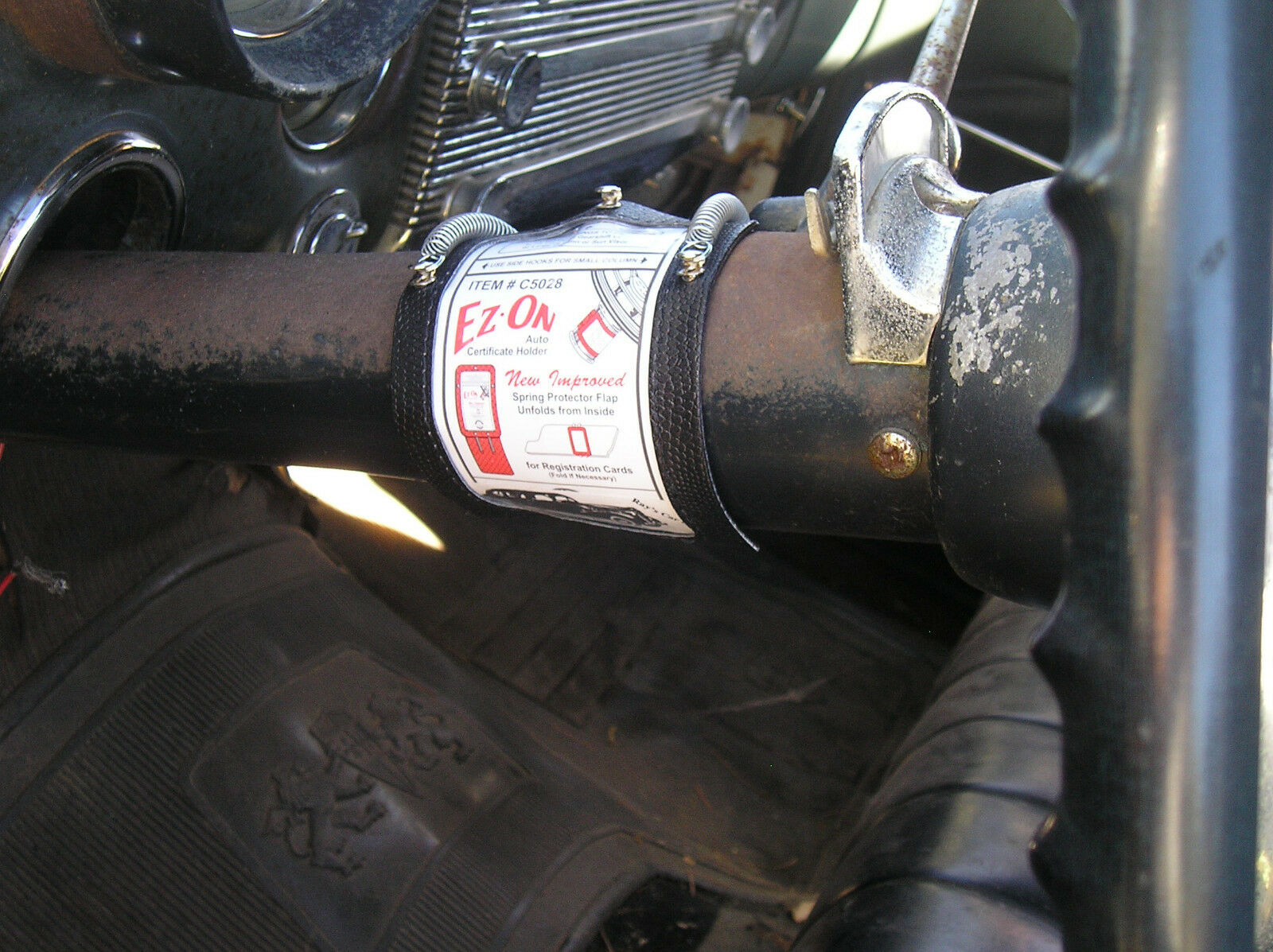 Explains an accompanying Big Sleep footnote: “Cars of the period included a frame where the owner’s license was kept, on the shaft of the steering wheel or on the dashboard.”