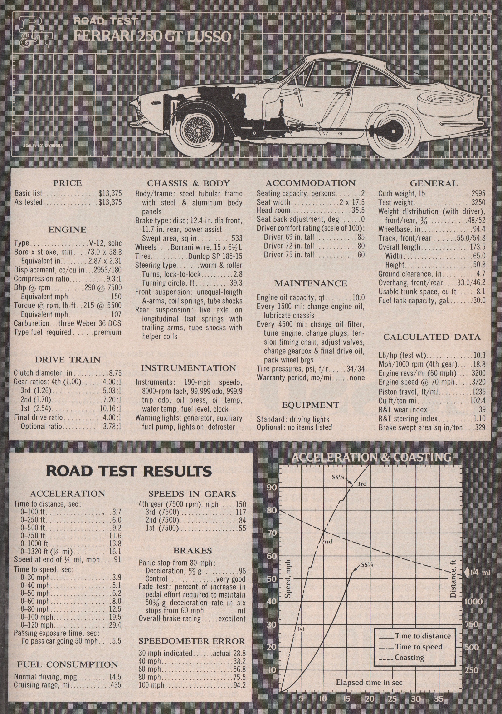 Note, however, the Lusso’s owner had been kind enough to let his car be tested: R&T was performing what it termed a “Classic Road Test” on a car produced five years before and having been enjoyed for some 20,000 miles.