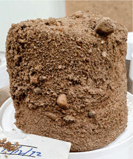 Dirt from the core’s base was once exposed at the Greenland surface. Image by Jean-Louis Tison/Université Libre de Bruxelles.