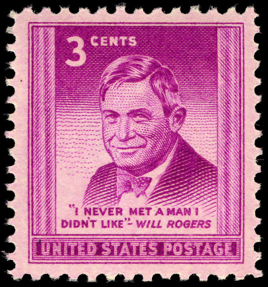 Contrary to the postage-stamp quote, what Will actually said was, “I joked about every prominent man in my lifetime, but I never met one I didn’t like.”