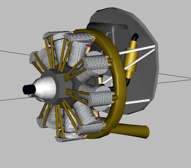 The Wilga had a variety of powerplants, most notably the Ivchenko AI-14R, a 10.1-liter, nine-cylinder, air-cooled radial. Most engines rotate clockwise; the Ivchenko, counterclockwise (a GMax feature deftly handled by appropriate axes for its propeller modeling).