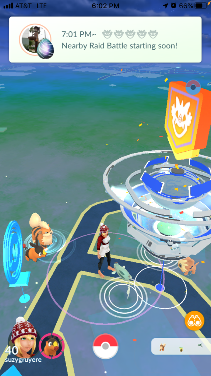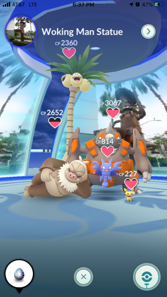 A motley crew trained by Team Mystic enjoys a brief calm while defending the gym against aggressors from Team Valor and Team Instinct.