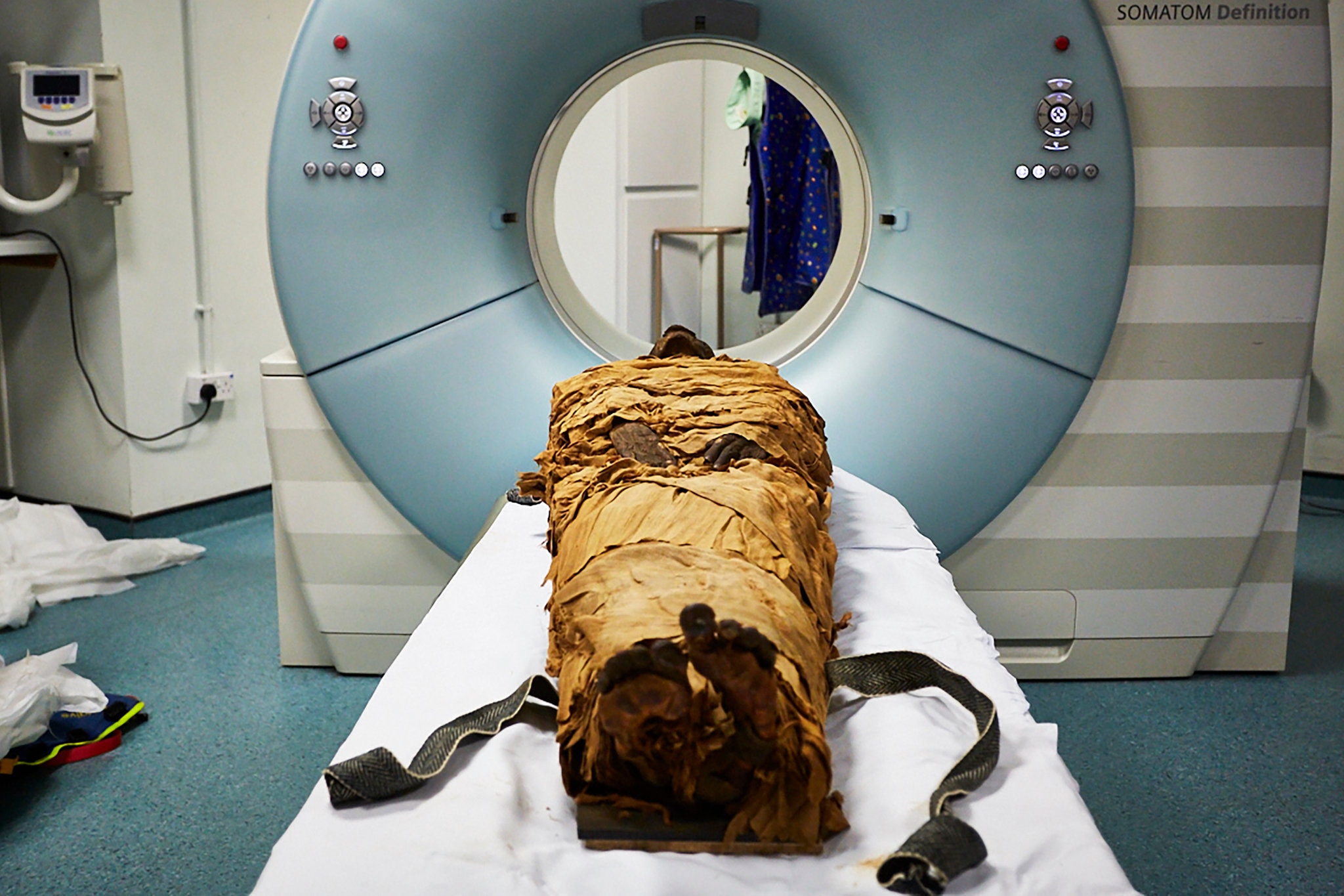 Nesyamun is ready for his Computed Tomography scan at Leeds Teaching Hospitals. This and the following image from The New York Times, January 23, 2020.