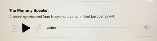 Nesyamun Not Amused?? Hearing this single “eh” from 3000 years ago gave me a shiver. And more than that: For reasons I cannot fathom, its little rectangle with actuating arrow remained locked in the lower right-hand portion of my iPhone’s The New York Times online presence—even after navigating to other articles at the website.