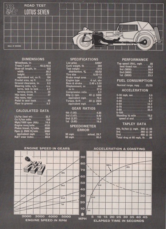 1961 Lotus Seven America. This and the following images from R&T, July 1961.