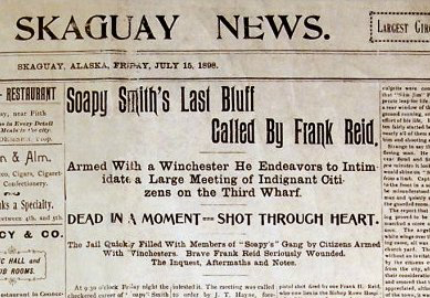 Skagway didn’t get real telegraphy until 1901. By then, Soapy Smith had been in a local grave for three years. He was shot dead on July 8, 1898, by a member of a vigilance committee in the Shootout on Juneau Wharf.