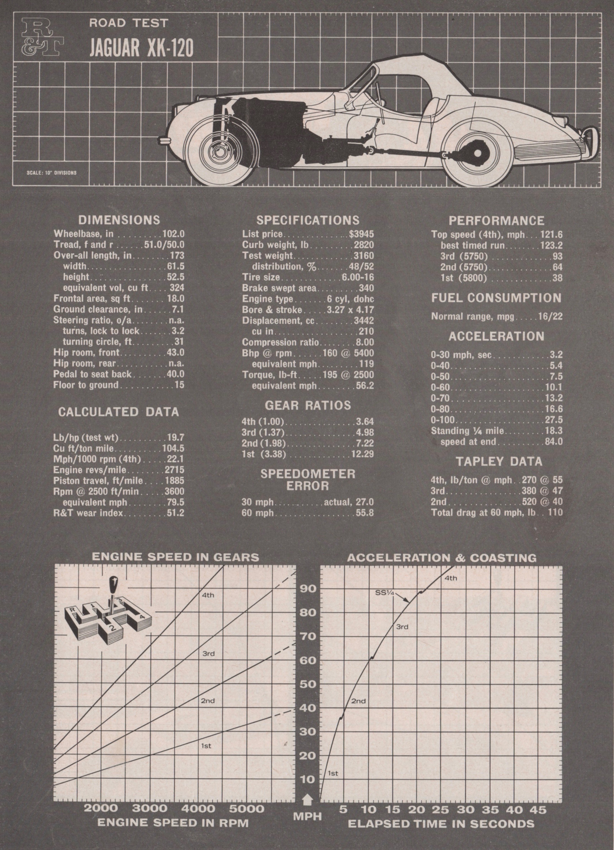 “The Jaguar XK-120,” R&T wrote, “has proven to be extremely popular in the U.S., but there are those who have questioned its high-speed ability. For this reason, we were particularly anxious to obtain an accurate top-speed figure.”