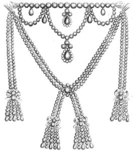 This diamond necklace was commissioned by King Louis XV of France for his mistress Madame de Barry. Queen Marie Antoinette, wife of his grandson Louis XVI, didn’t think much of the bauble. A scandal followed.