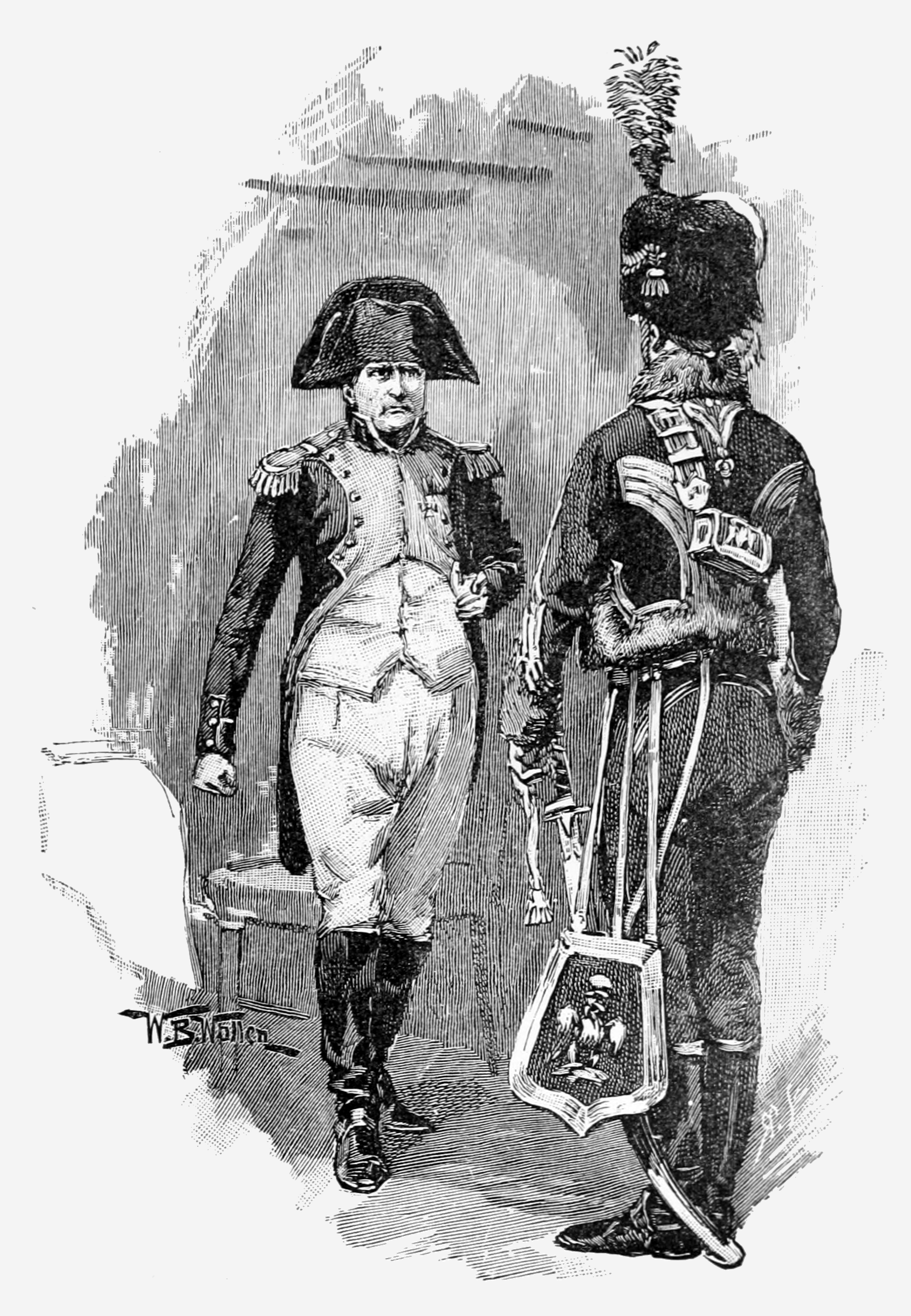 Napoleon delivers an assignment; Brigadier Gerard is at left. This and the following images by William B. Wollen.