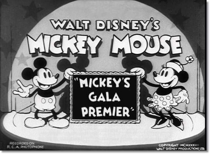 “The last programme transmitted,” Wikipedia writes, “was a Mickey Mouse cartoon, Mickey’s Gala Premier, 1933, which was followed by test transmissions; this account refuted the popular memory according to which broadcasting was suspended before the end of the cartoon.”