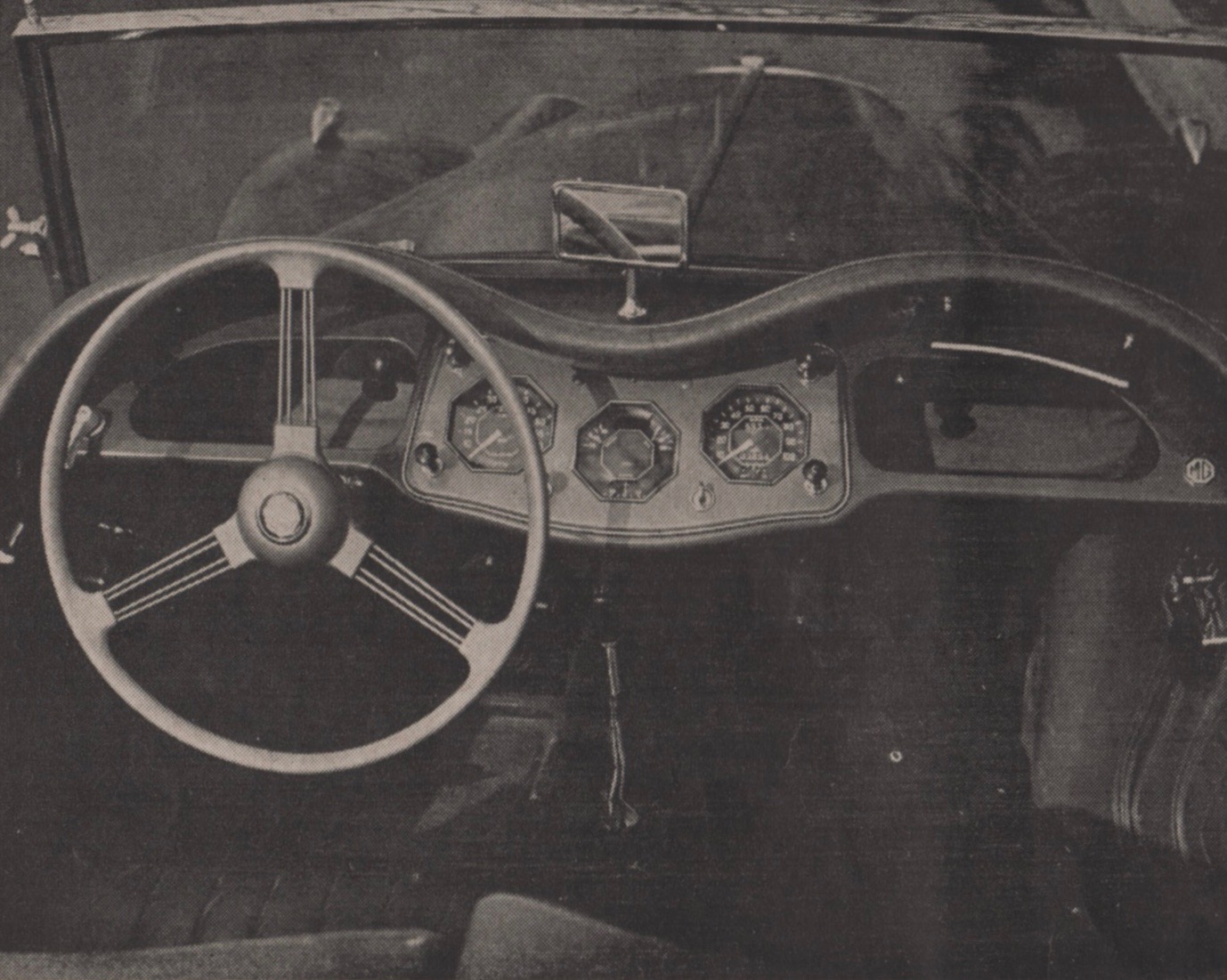 The TF cockpit featured individual seatbacks, unlike the single benchbacks of earlier Ts. The TF instrument panel paid tribute to the MG logo with its three octagonal bezels.