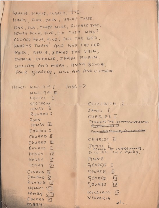On English History. English pal David Roberts once attempted to teach me monarchial history with this poem, one he had committed to memory, no doubt under duress, during his public school years.