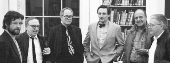 Archigram: From left to right, David Green, Warren Chalk, Peter Cook, Michael Webb, Ron Herren, and Dennis Crompton. Image from The Guardian.